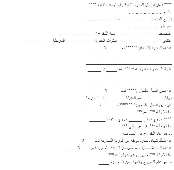 نأمل ارسال السيرة الذاتية بالمعلومات الاتية: