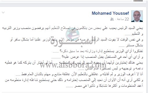 الوزير و لم أقابله و علاقتي بالتعليم الآن علاقة متابع و مهتم بالشان العام فقط