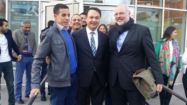 والنزاعات والذين يواجهون تضييقا سياسيا فى بلادهم بسبب آرائهم ومواقفهم السياسة ، مشيرا إلى أن الجامعة الألمانية بالقاهرة فتحت الباب أمام استقبال أعداد