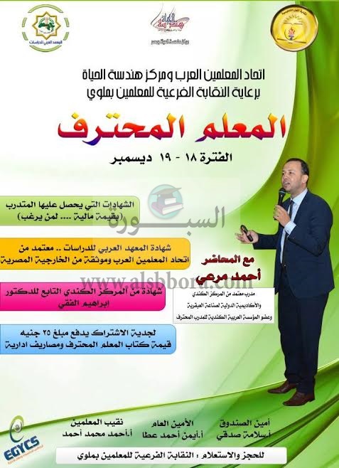 نظمت نقابة المعلمين الفرعية بملوى برئاسة احمد محمد احمد على الشهير "بحمادة النقيب" دورة المعلم المحترف المقرر عقدها اليوم وغداً الإثنين لرفع مهارات المعلمين وتنمية قدراتهم