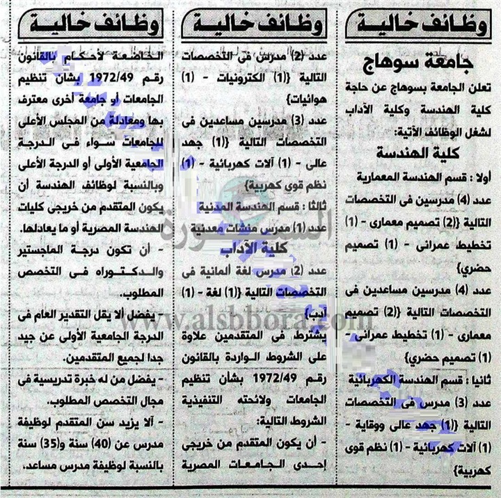 تعلن جامعة سوهاج عن وظائف جديدة لأعضاء هيئة التدريس "من معيد إلي أستاذ" ودلك وفقا لنص الإعلان التالي: