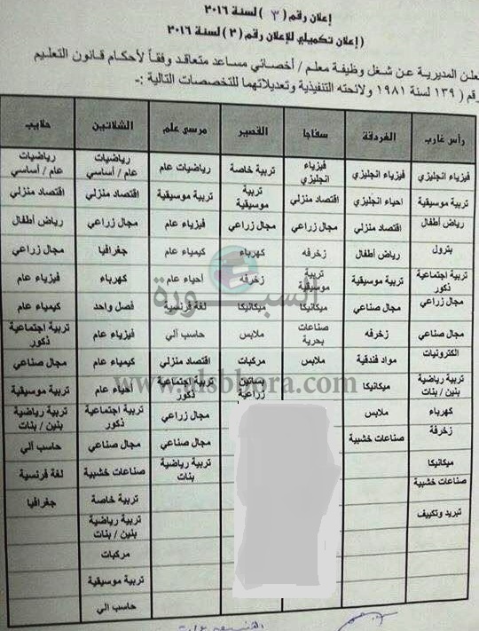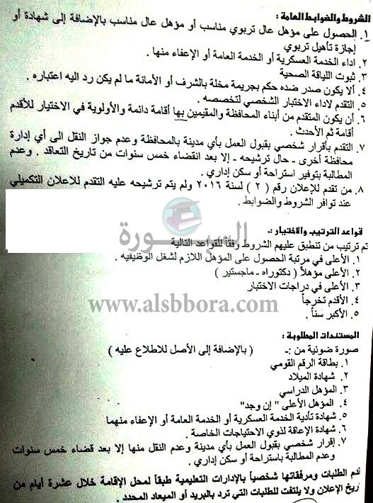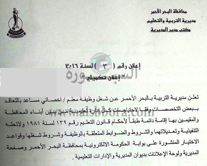 اعلنت مديرية التربية والتعليم عن اعلان لشغل وظيفة معلم/ اخصائى وفقا لاحكام قانون التعليم