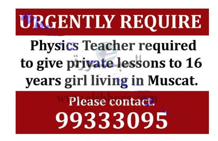 تعلن احدى المدارس الخاصة بسلطنة عمان عن حاجتها الى معلمين، وعلى الراغبين فى التقدم ارسال السيرة الذاتية عبر الايميل المنشور فى الاعلان التالى: