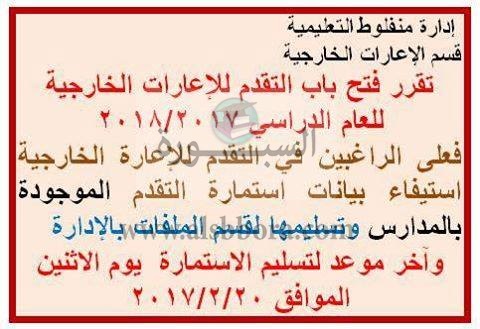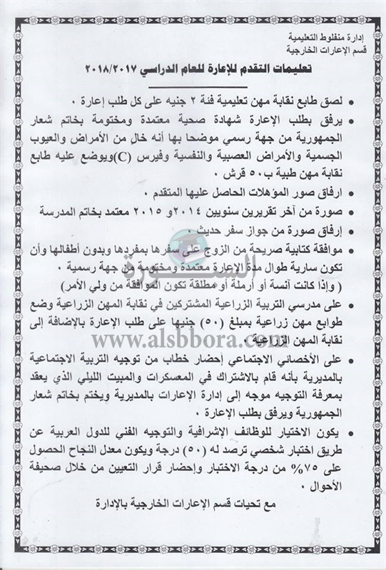 بالمستندات| ننشر الملف الشامل بشأن الاعارات وشروطها وموانعها والتى أعلنت عنها وزارة التربية والتعليم لعام 2017.. وآخر موعد للتقديم 15فبراير 2017