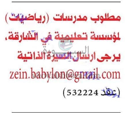 تعلن مدرسة خاصة في إمارة الشارقة في دولة الإمارات عن وظائف جديدة للمعلمين وفقا لنص الإعلان التالي: