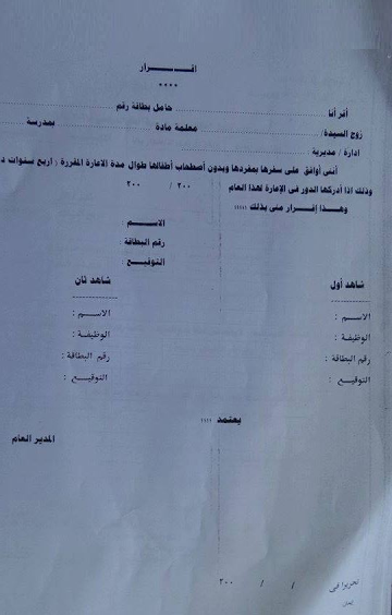 إقرار من الزوج بالنسبة للزوجة + طابع مهن تعليمية.