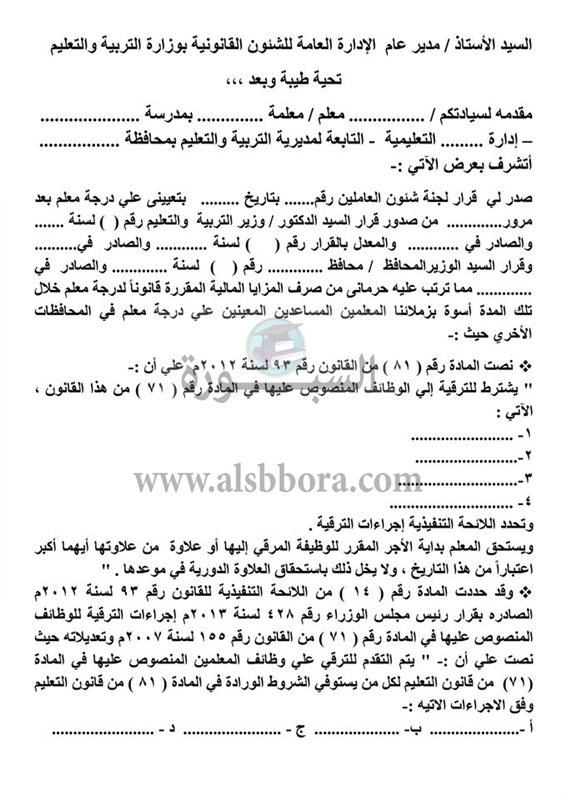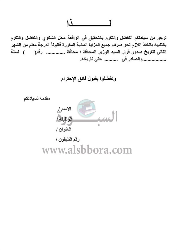 ينشر موقع السبورة نص شكوى بدل اعتماد للمعلمين والتى يتم ارسالها الى الادارات التعليمية لصرف البدل المتأخر.