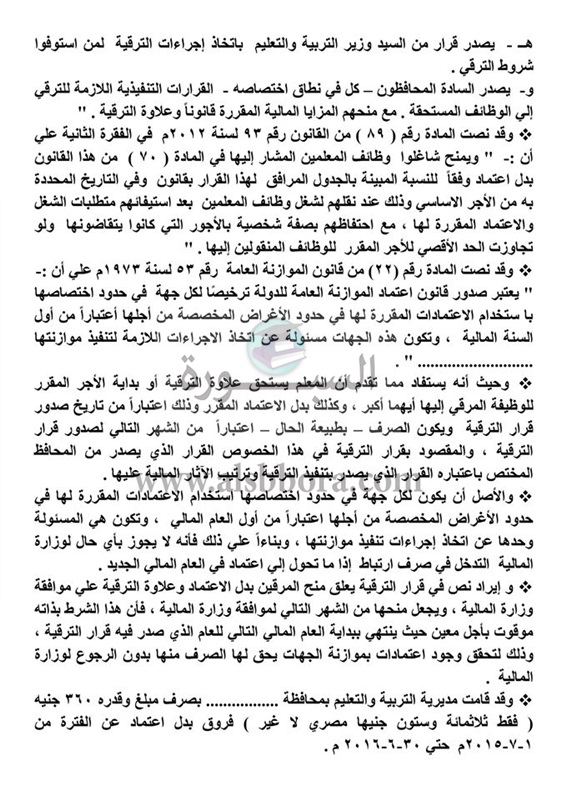 ننشر نص شكوى بدل اعتماد للمعلمين