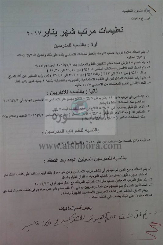 بالمستندات.. تعرف علي تعليمات مرتب شهر يناير للمدرسين والإداريين والمعينين الجدد بالتربية والتعليم