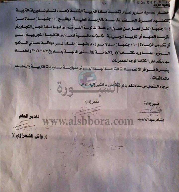 بالمستندات| صرف 60 جنيها سلف خاصة لفصول التربية الفنية بالثانوى العام.. و160 جنيها للتجريبى
