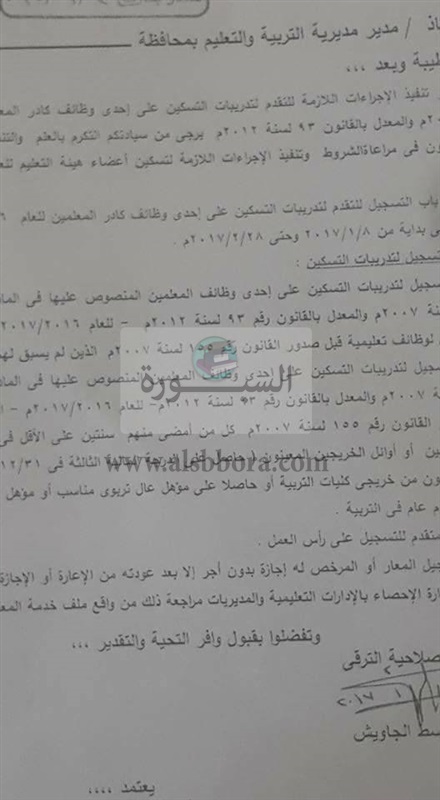 ويتعين على إدارة شئون العاملين وإدارة الإحصاء بالإدارات التعليمية والمديريات مراجعة ذلك من واقع ملف خدمة المعلم.