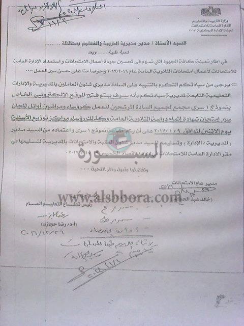 أعلنت وزارة التربية والتعليم عن فتح الموقع الالكترونى الخاص بنموذج 1 سرى مجمع لجميع السادة المرشحين للعمل كرؤساء ومراقبين أوائل للجان سير امتحان شهادة اتمام دراسة الثانوية العامة وكذلك رؤساء مراكز توزيع الاسئلة يوم الانثن الموافق 9 يناير 2017 على أن يتم طباعة نموذج 1 سرى واعتماده من السيد مدير "المديرية/ الادارة" وتسليمه للسيد مدير شئون الطلبة والامتحانات بالمديرية لتسليمها فى مقر الادارة العامة للاىمتحانات فى موعد اقصاه الخميس 19 يناير.