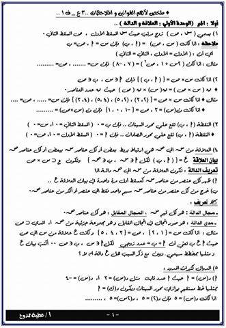 ننشر ملخص قوانين الرياضيات للفصل الدراسى الأول للصف الثالث الاعدادى.. لازم تذاكره