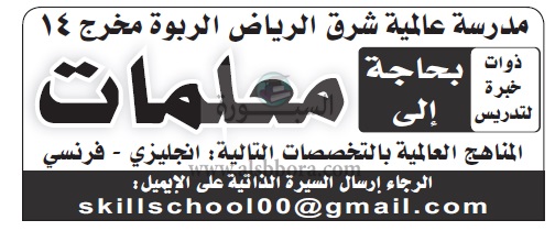 تعلن مدرسة خاصة في المملكة العربية السعودية عن وظائف جديدة للمعلمين وذلك وفقا لنص الإعلان التالي: