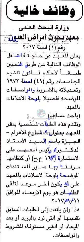 تعلن وزارة البحث العلمي عن وظائف جديدة لأعضاء هيئة التدريس وذلك وفقا لنص الإعلان التالي: