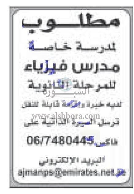 أعلنت عدد من المدارس الخاصة في الامارات عن حاجوظائف جديدة للمعلمين جدد وذلك في المواد الواردة في الاعلان التالي: