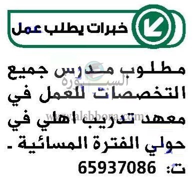 يعلن معهد تعليمي في دولة الكويت عن حاجته للتعاقد مع معلمين في جميع المواد وذلك وفقا لنص الإعلان التالي: