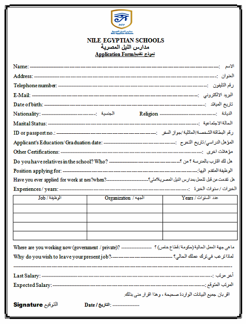 - استمارة التقدم للوظيفة