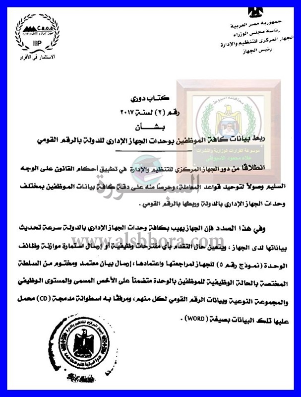 لا تزال أصداء قرار جهاز التنظيم والإدارة بشأن ربط بيانات العاملين بالدولة بالرقم القومي صداها يتردد.