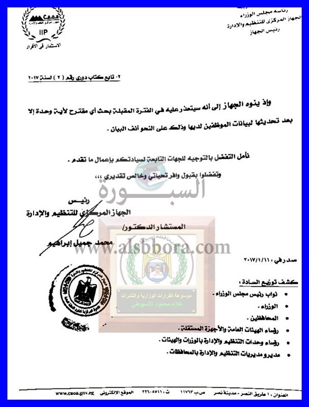 أعداد العاملين في الجهاز الإداري بالدولة خصوصا أنها المرة الاولي التي يتم فيها
