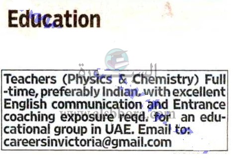 تعلن احدى المدارس الخاصة بدولة الامارات عن حاجتها الى معلمين، وعلى الراغبين فى التقدم ارسال السيرة الذاتية عبر الايميل المنشور فى الاعلان التالى: