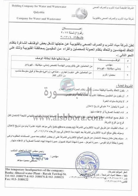وظائف خالية بشركة مياة الشرب بالقليوبية