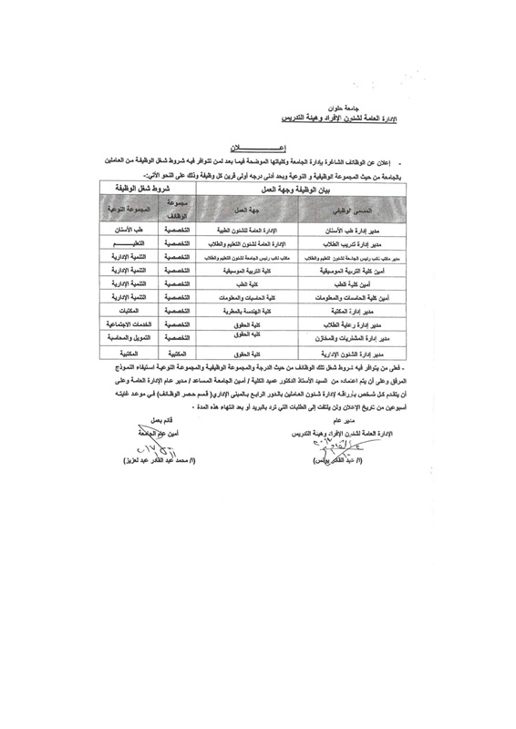 وظائف شاغرة بجامعة حلوان..ننشر التفاصيل