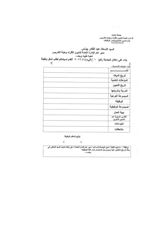 كما نشرت الجامعة الاستمارة الخاصة التي يجب ملؤها من المتقدمين لشغل الوظائف المُعلن عنها.