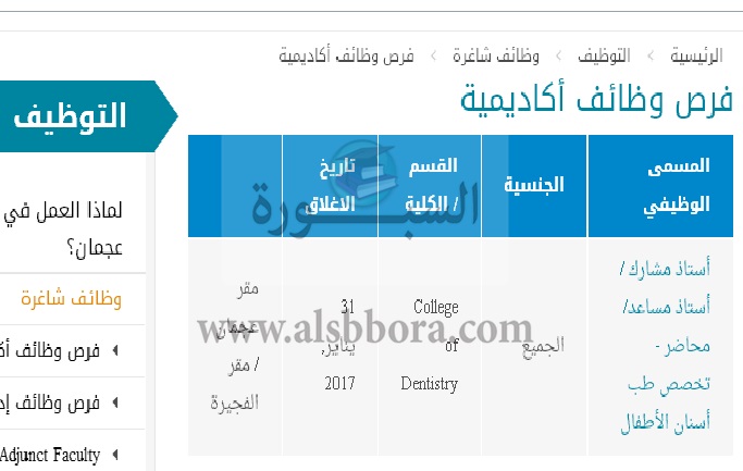 تعلن جامعة عجمان الإماراتية عن وظائف جديدة لأعضاء هيئة التدريس وذلك في التخصصات التالية: