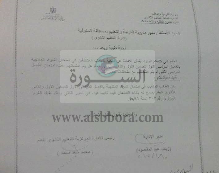 عاجل.. "التعليم": احقية طالب الصف الأول والثانى الثانوى العام المتغيب عن امتحان الترم الأول دخول امتحان الدور الثانى