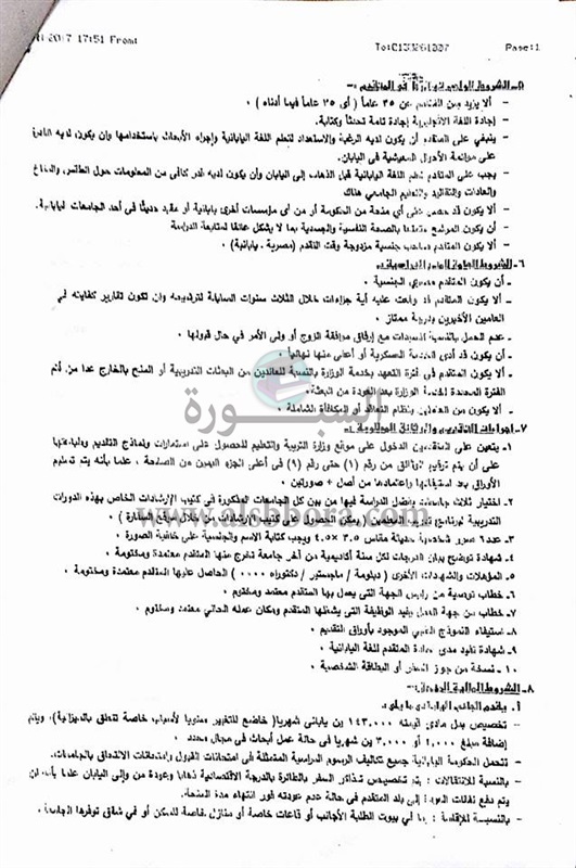 تعلن الإدارة العامة للعلاقات الثقافية الخارجية والوافدين بديوان عام وزارة التربية والتعليم والتعليم الفنى، عن منحة مقدمة من الحكومة اليابانية الى المعلمين المصريين للدراسة فى الجامعات اليابانية فى الفترة من مارس 2017 الى مارس 2019، ومدة الدارسة 18 شهرا.