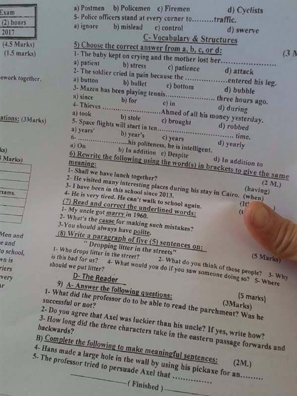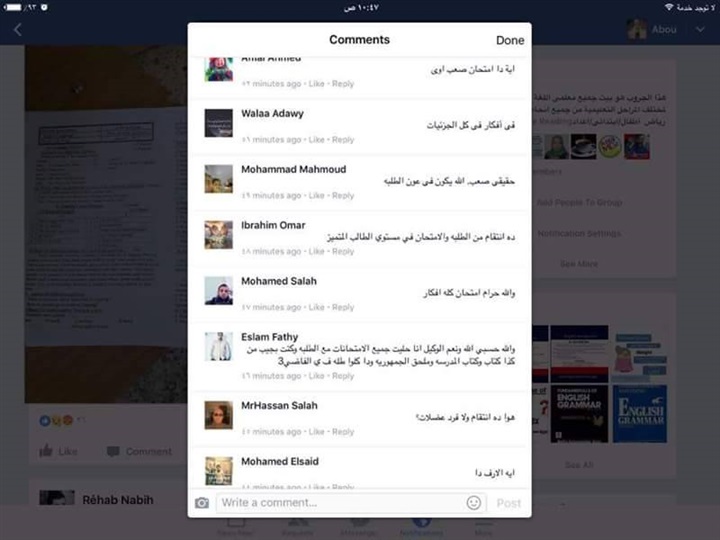 حيث عن اسيائهم من تلك الامتحان عبر صفحاتهم الخاصة بمواقع التواصل الاجتماعي، وقال عصام معتصم، معلم لغة إنجليزية بمحافظة الشرقية: "الامتحان فوق مستوى الطالب المتفوق، وهو ما ليس إلا امتحان تعجيزي"، وأضاف حسن صلاح، معلم لغة إنجليزية: "انتقام ولا فرد عضلات".