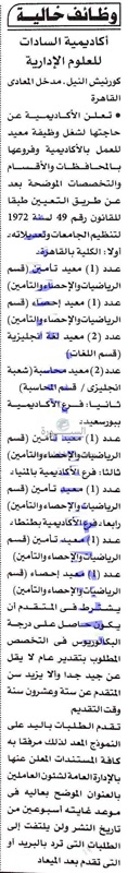 تعلن أكاديمية السادات عن وظائف جديدة لأعضاء هيئة التدريس في فروعها بالمحافظات وذلك وفقا لنص الإعلان التالي: