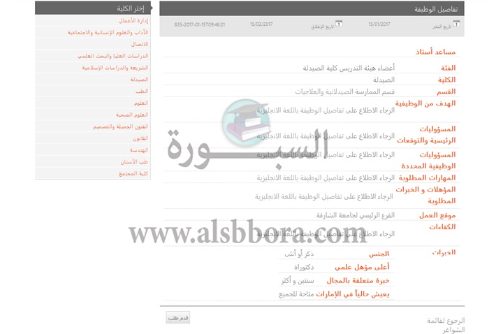 وعلي الراغبين في التقديم التسجيل عبر رابط التوظيف الخاصة بجامعة الشارقة.. سجل هنا