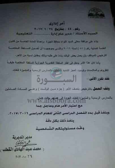 عاجل وبالمستندات| "التعليم" تقرر وقف العمل بالترخيص بنصف الأجر.. وعودة المعلمين الى مدارسهم قبل بداية الترم الثانى