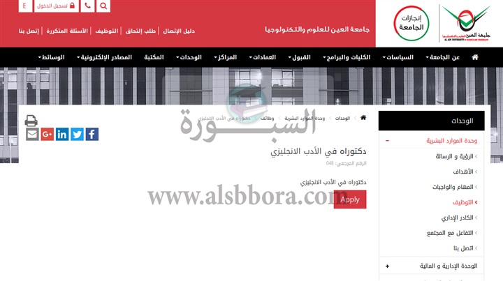 وعلي الراغبين في التقديم التسجيل علي رابط الجامعة الخاص بالتوظيف سجل هنااااااااااااا