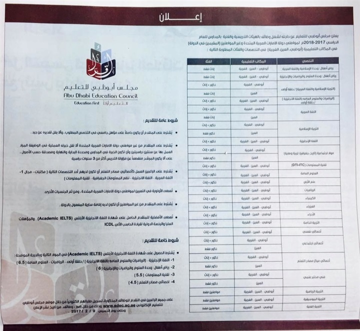 المجلس الاعلى للتعليم بأبوظبى يعلن عن وظائف لجميع التخصصات للمعلمين والأخصائيين..التقديم اون لاين