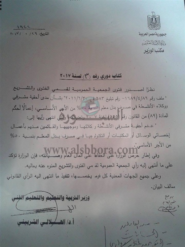 الوزير كتابكم رقم 3 لسنة 2017 هو عقاب ام استكمال لما تقوم به الوزارة ضد المعلمين
