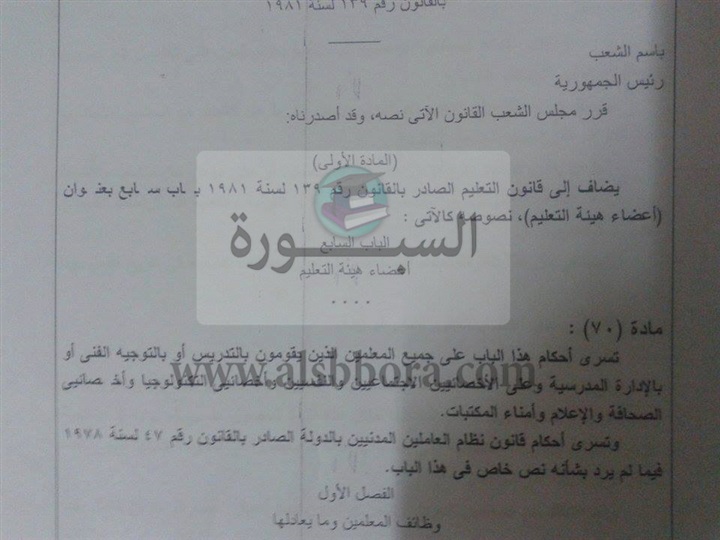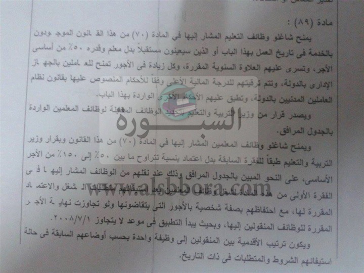نص المادة لمن يرغب في ان يطبق القانون يمنح شاغلو وظائف التعليم المشار اليها في المادة