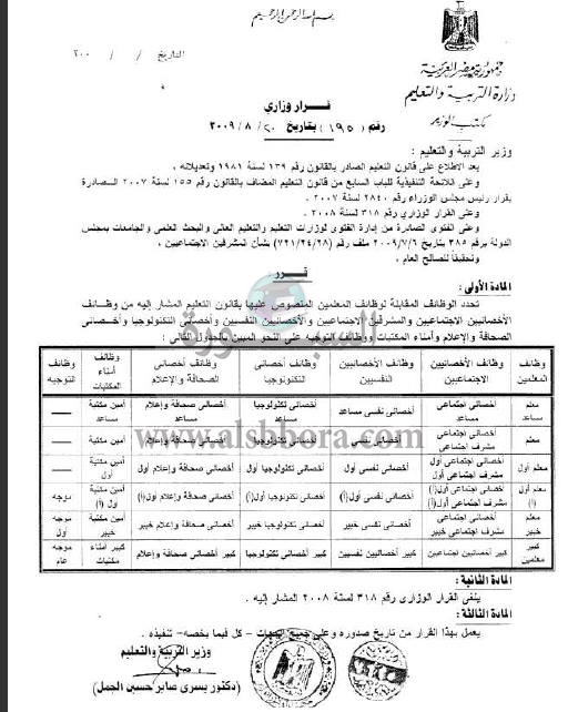 ينشر موقع السبورة وظائف المعلمين التى لها الحق فى صرف بدل معلم وبدل اعتماد قرار وزير التربية والتعليم رقم 195 لسنة 2009 م طبقا لصريح نص المادة رقم 70 والمادة رقم 89 من القانون رقم 155 لسنة 2007م وتعديلاته.