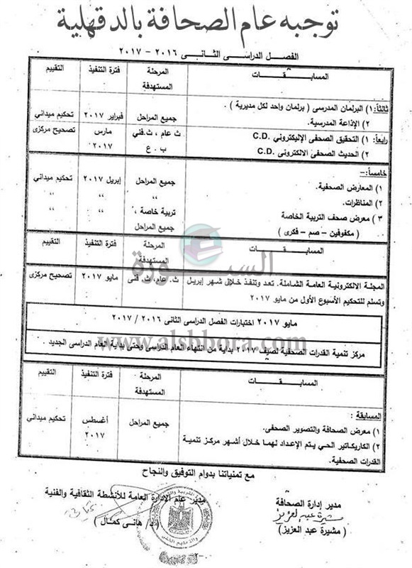 ننشر خريطة عمل التوجيه العام للصحافة للفصل الدراسي الثاني لعام 2017/2016