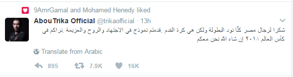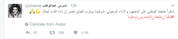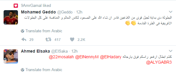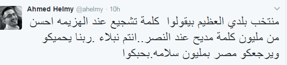 وجه عدد من نجوم الفن والرياضة رسائل الى لاعبى المنتخب الوطنى بعد خسارتهم امس بطولة افريقيا امام المنتخب الكاميرونى حيث جاءت اغلب الرسائل تاكيدا على ثقتهم فى الاعبيين ومتمنين لهم التوفيق الصعود الى كاس العالم لتعويض الخسارة للبطولة الافريقية