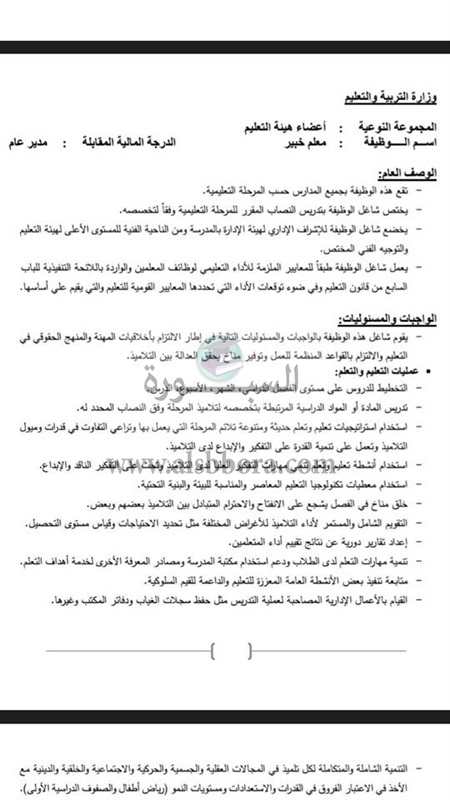 ينشر موقع السبورة الوصف الوظيفى لمعلم خبير التى أقرتها وزارة التربية والتعليم والتعليم الفنى.