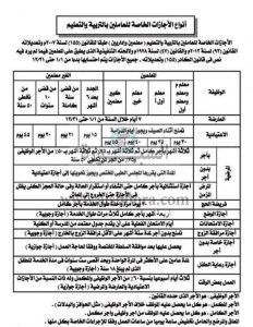 تعرف على ..انواع الاجازات الخاصة للعاملين بوزارة التربية والتعليم