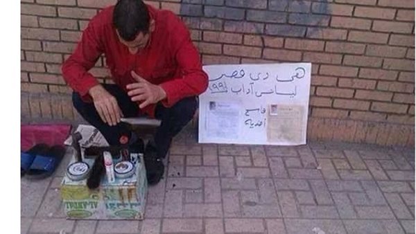 صورة | شاب المؤهل ليسانس أداب والمهنة ماسح احذية ..حرااااااااااام