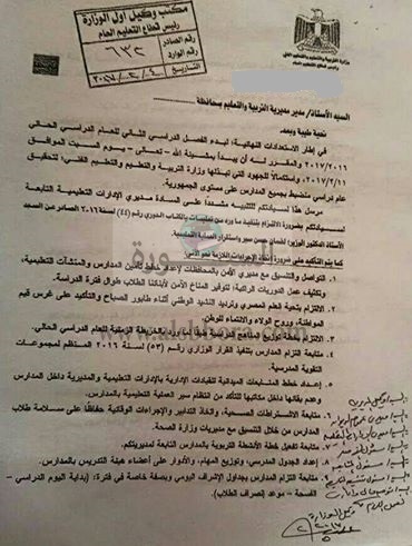 التعليم تتخذ إجراءات مشددة استعدادًا لبدء الفصل الدراسى الثانى ..ننشر نص الخطاب