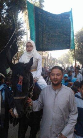 زفة بمحافظة اسيوط لفتاة بالصف الاول الاعدادي لحفظها القرآن الكريم