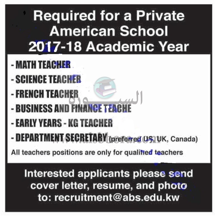اعلنت احدى المدارس الدولية بالكويت عن حاجتها الى معلمين للعام الدراسى الجديد 2018/2017 وفقا للاعلان التالى