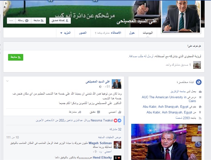 وقالت الصفحة فى تدوينة لها اليوم: "ما كان من توفيق فمن الله، نتمنى أن يعيننا الله على خدمة هذا الشعب العظيم، من أى مكان فنحن فى خدمة هذا الشعب"، وأعلنت الصفحة فى منشورها: "الدكتور على المصيلحى وزيرا للتموين وشكرًا لكم جميعا".