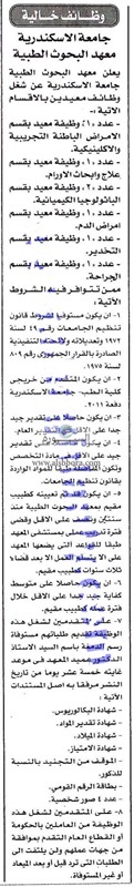 تعلن جامعة الإسكندرية عن حاجتها للتعاقد مع أعضاء هيئة تدريس جدد وذلك وفقا لنص الإعلان التالي: